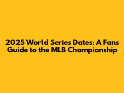 2025 World Series Dates: Mark Your Calendars!