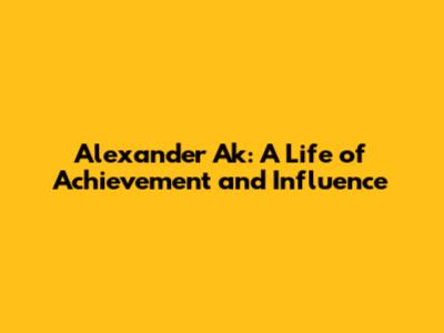 Alexander Ak: Biography, Career & Impact
