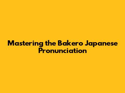 Bakero Japanese Pronunciation Guide