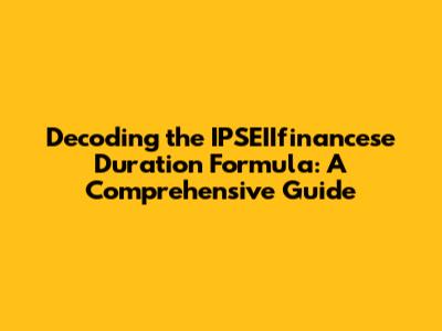 Decoding The IPSEIIfinancese Duration Formula: A Comprehensive Guide