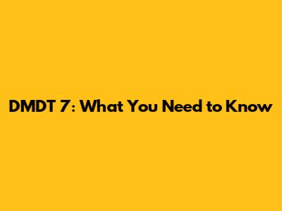 DMDT 7: What You Need To Know