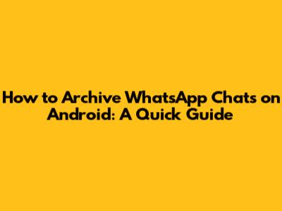 How To Archive WhatsApp Chats On Android: A Quick Guide
