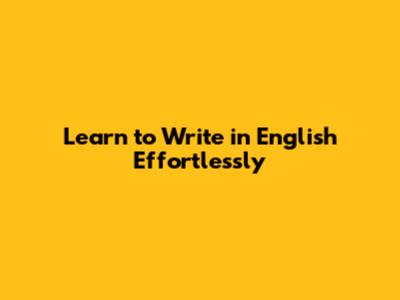 Learn To Write In English Effortlessly