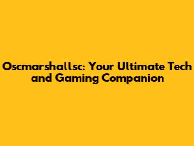 Oscmarshallsc: Your Guide To Tech And Gaming