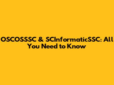 OSCOSSSC & SCInformaticSSC: All You Need To Know