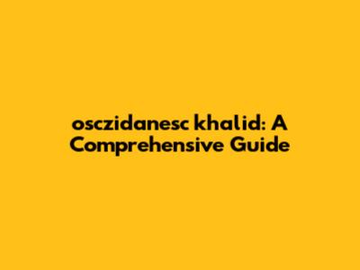 Osczidanesc Khalid: A Comprehensive Guide