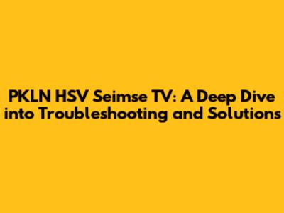PKLN HSV Seimse TV: Troubleshooting & Solutions