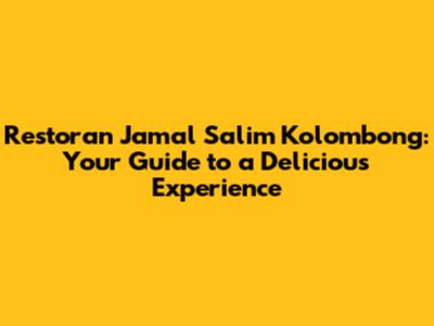 Hey food lovers! Ready to embark on a culinary adventure in Kolombong? Let's dive into Restoran Jamal Salim Kolombong, a local favorite that's been making waves in the food scene. We're going to explore what makes this restaurant special, from its mouthwatering dishes to its inviting atmosphere. So, grab a seat, get comfy, and let's get started!