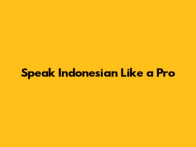 Speak Indonesian Like A Pro