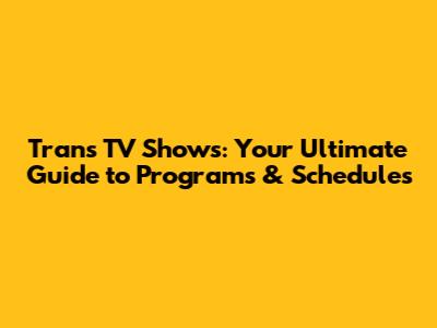 Trans TV Shows: Your Ultimate Guide To Programs & Schedules