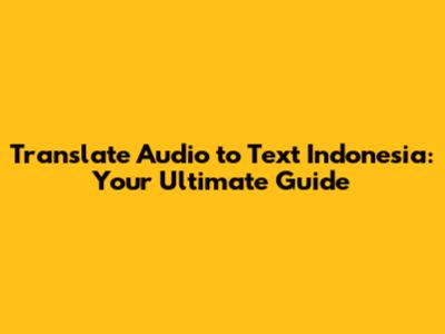 Translate Audio To Text Indonesia: Your Ultimate Guide