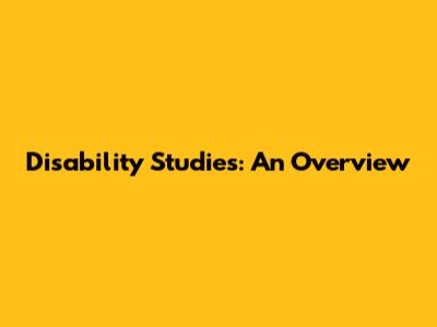 Understanding Disability Studies: An Overview