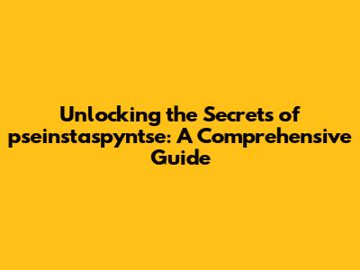 Unlocking The Secrets Of Pseinstaspyntse: A Comprehensive Guide