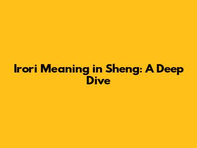 Unpacking 'Irori': Decoding The Sheng Slang Term
