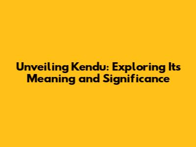 Unveiling 'Kendu': Exploring Its Meaning And Significance