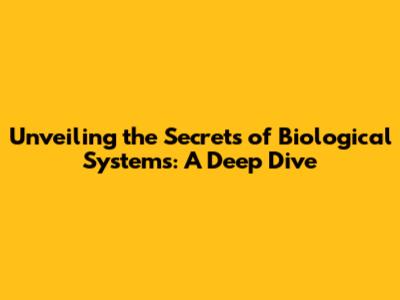 Unveiling The Secrets Of Biological Systems: A Deep Dive